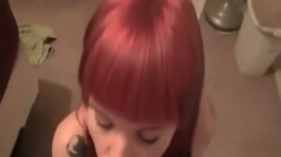 Cute tattooed and busty red haired emo chick enjoys sucking dick