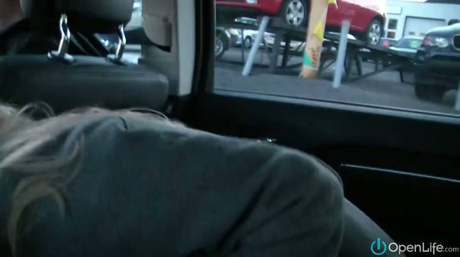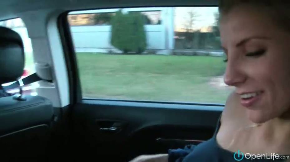 Kinky sinful and busty blonde flashes her boobs and gets twat licked in car