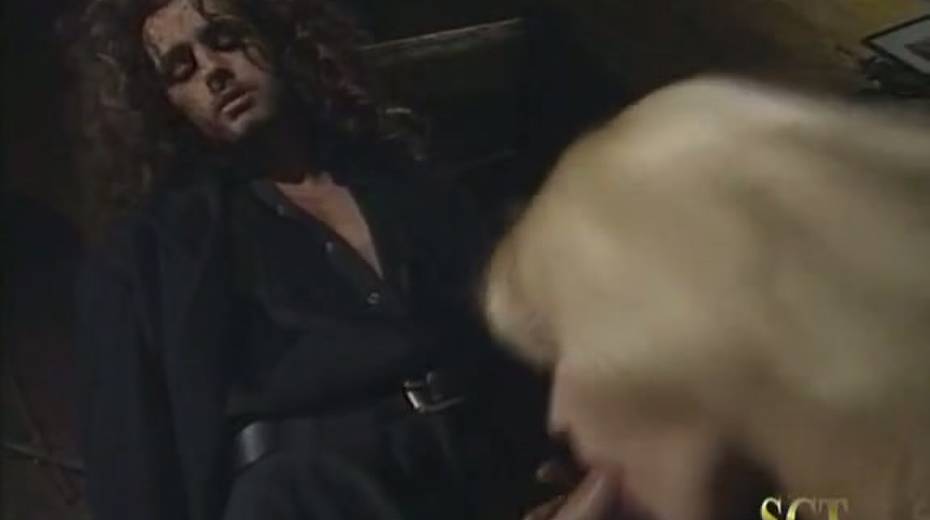 Charming vintage blonde in black lingerie passionately sucks lollicock
