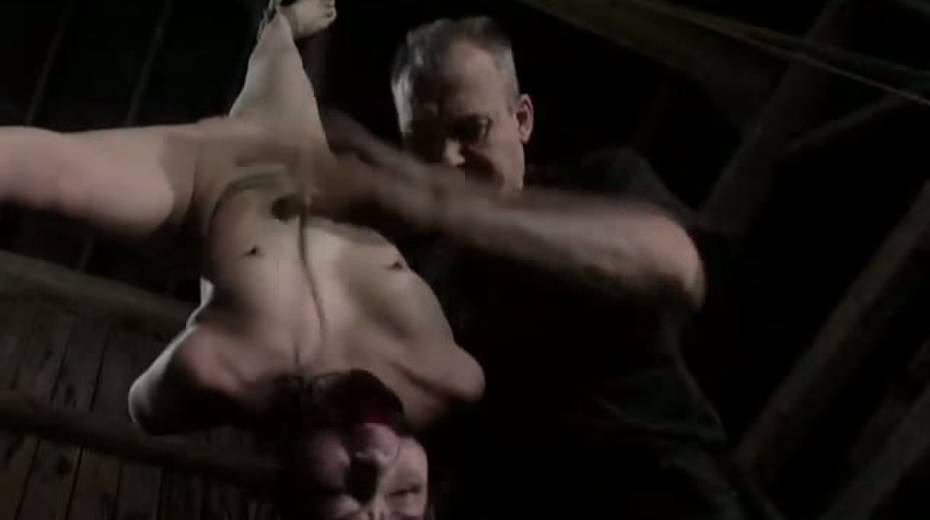Tied up gal with ball gag in her mouth hole gets punished in the basement