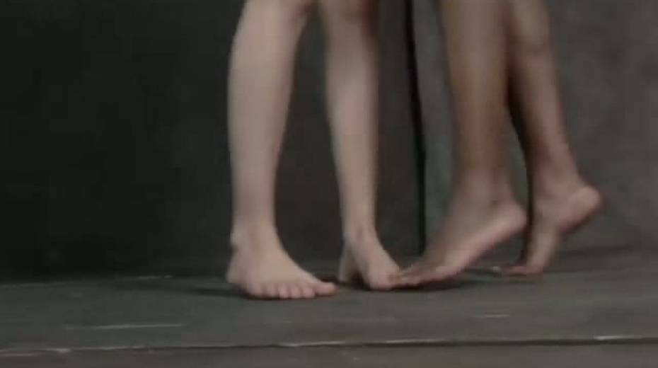Tied up lesbians kiss each others nipples and necks