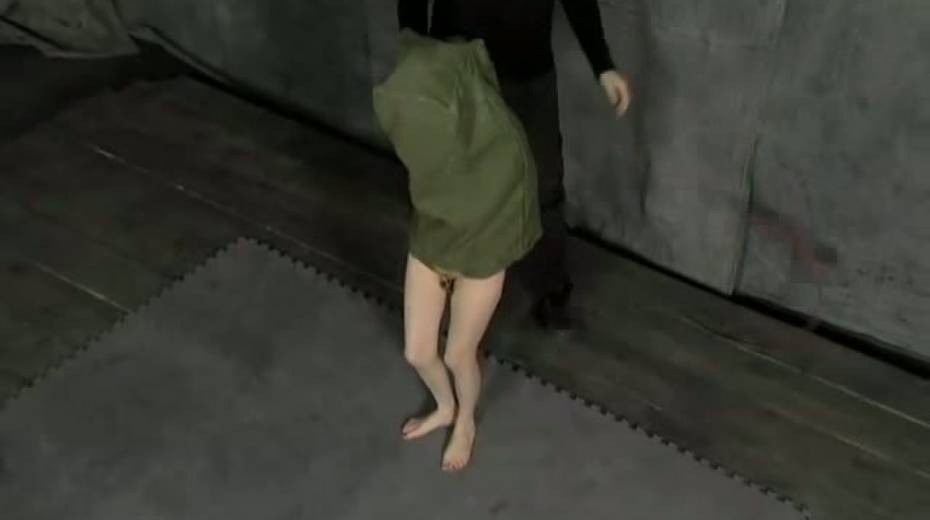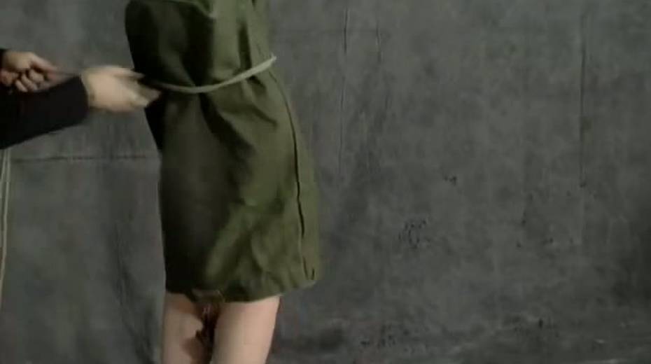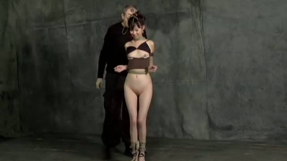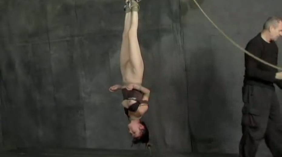 Dude finger fucks slit of tied up and suspended exotic gal
