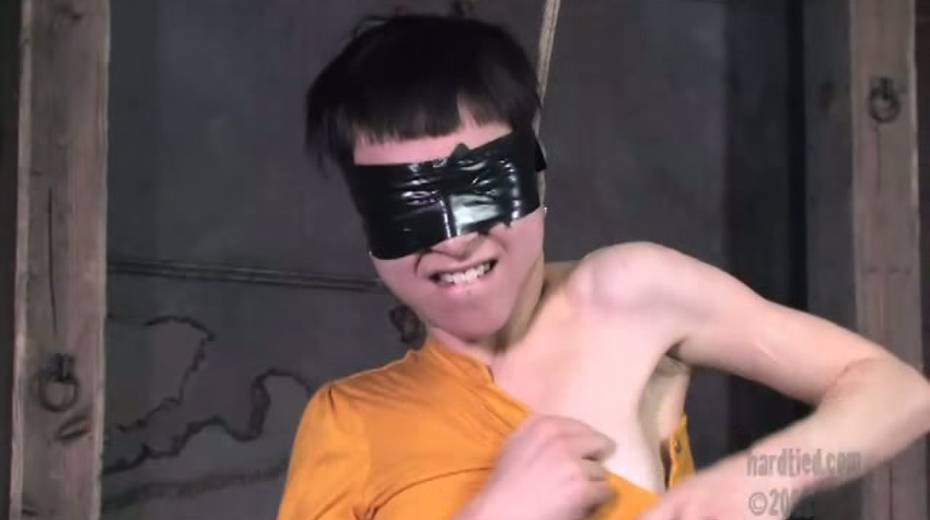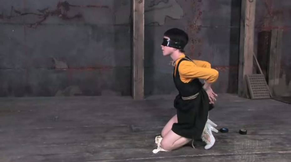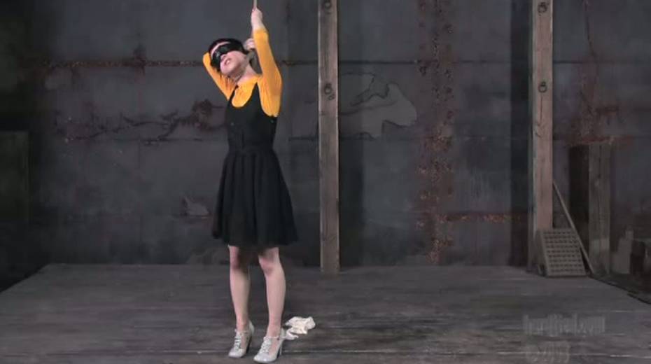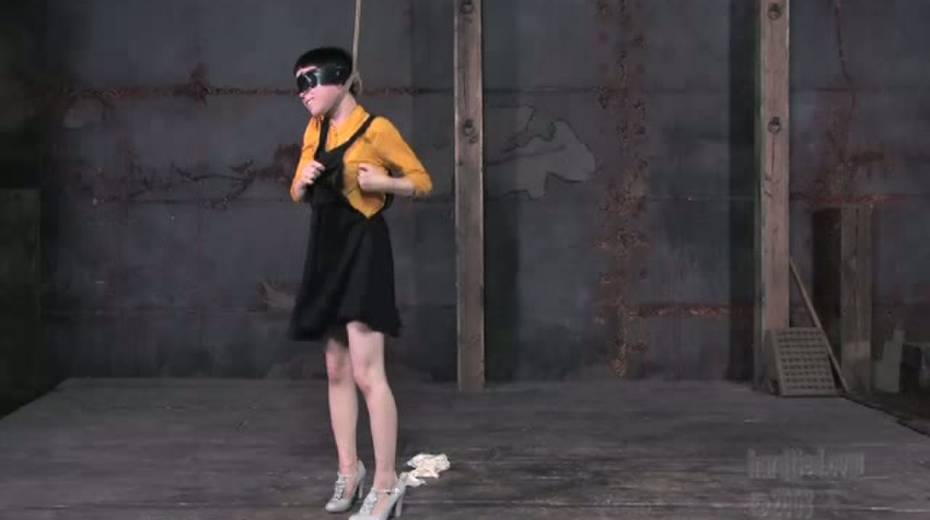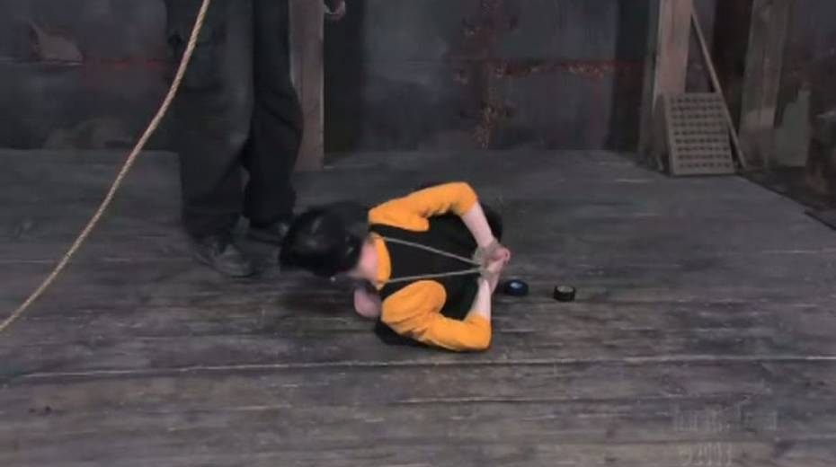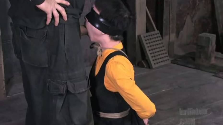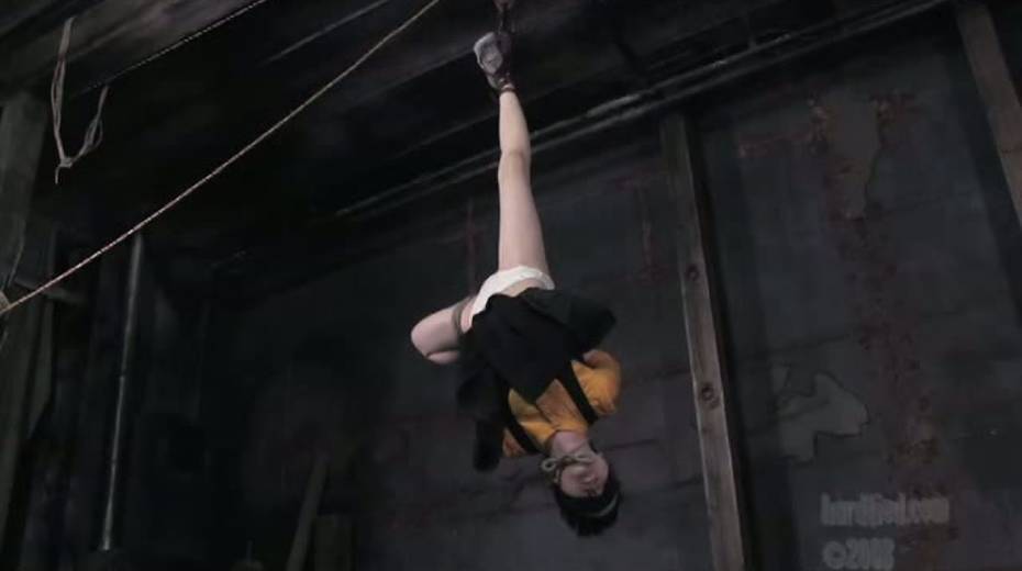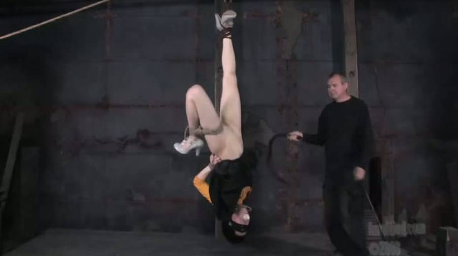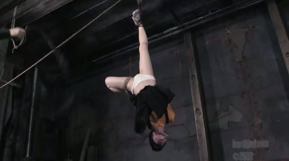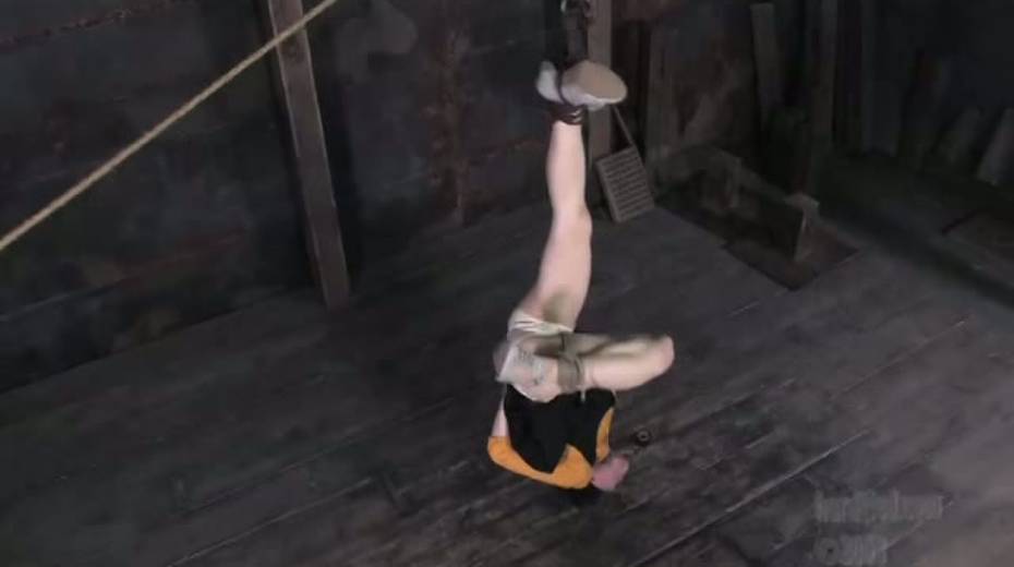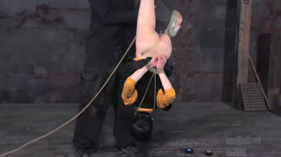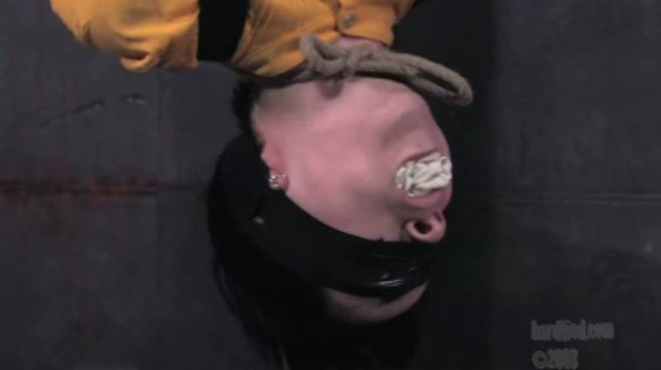 Tied up bitch is face fucked in upside down position