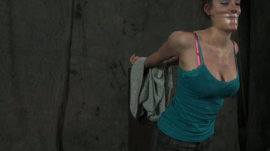 Pervert makes use of scotch tape to punish tied up sex slave