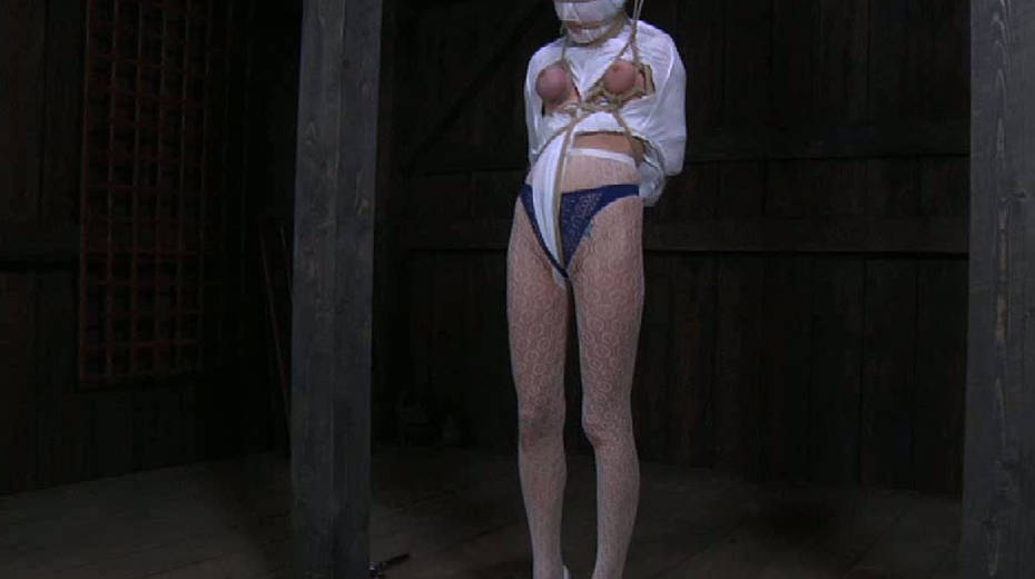 Restrained sex-slave with mask on her head gets punished in the dungeon