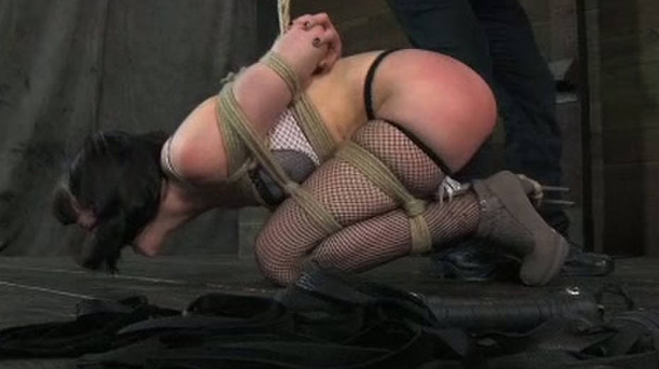 Trashy looking chick in thongs and fishnet stockings gets punished