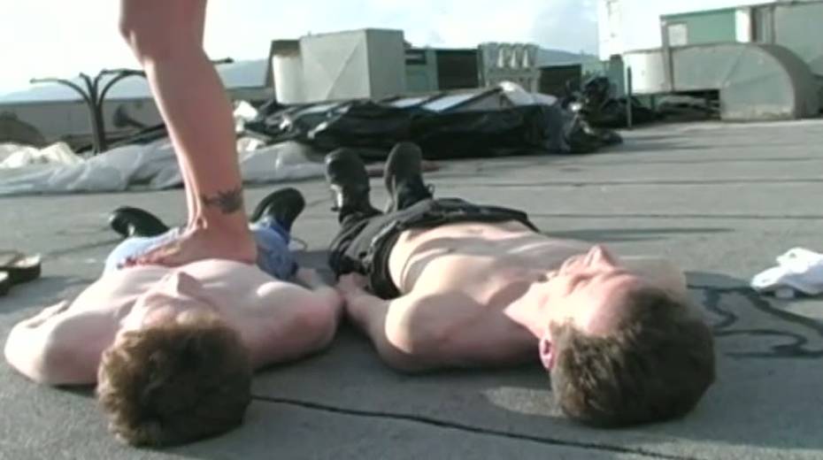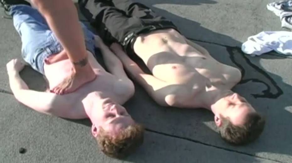 Super curvy blondes enjoy walking on nude bodies