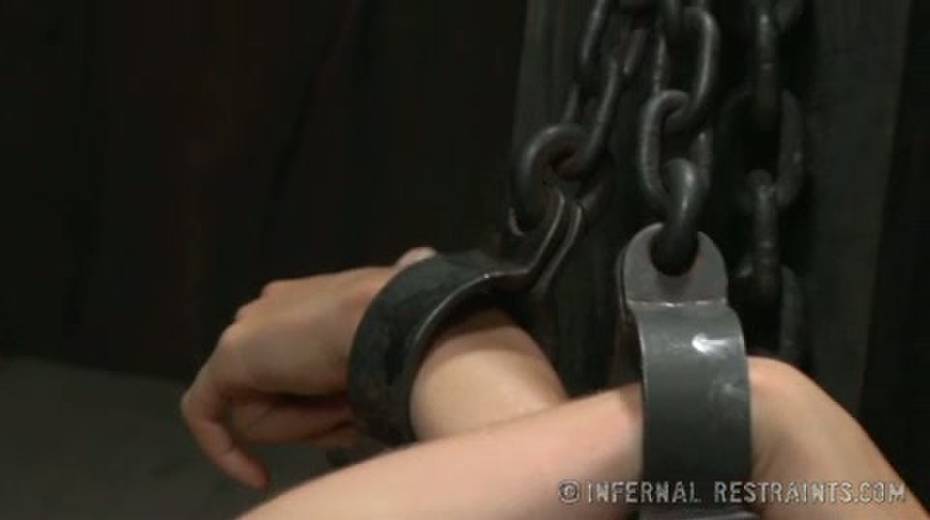 Raunchy blonde is locked in shackles and totally helpless