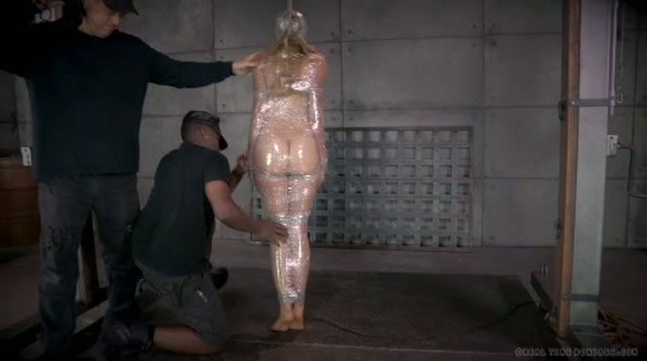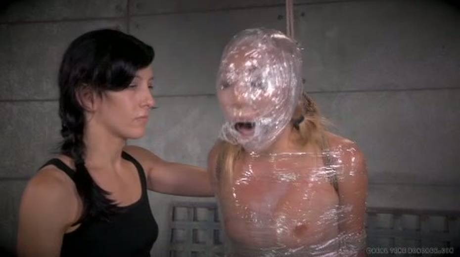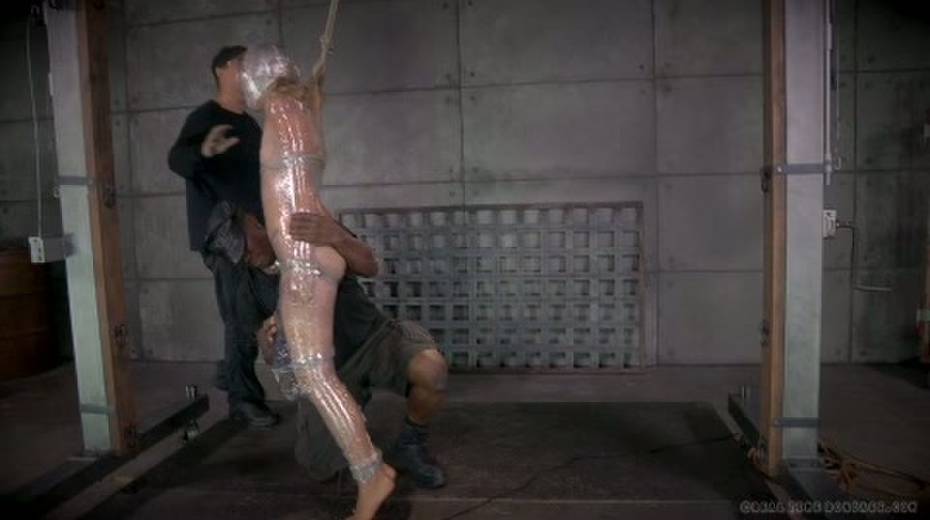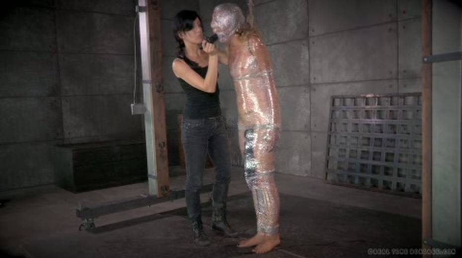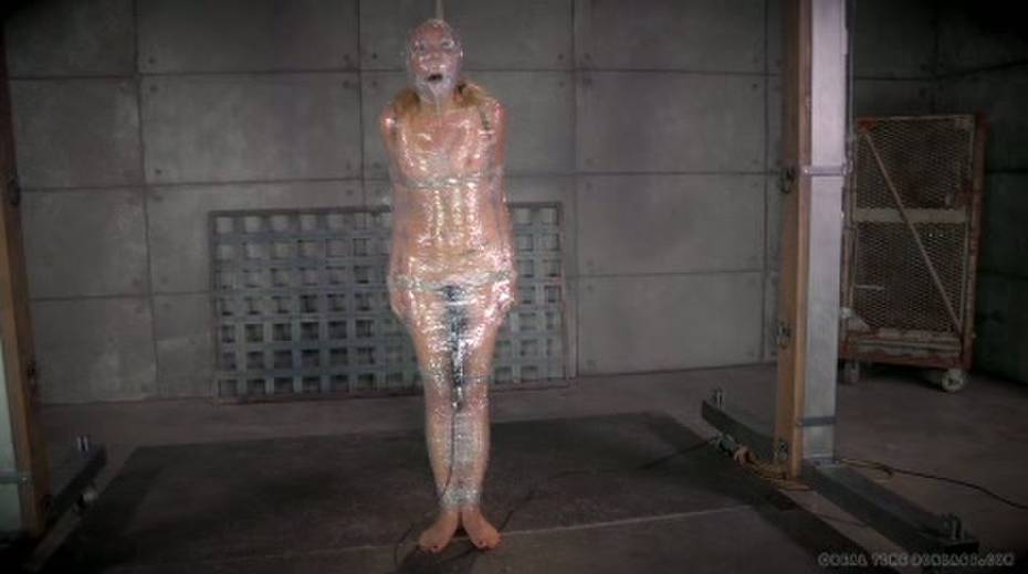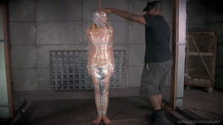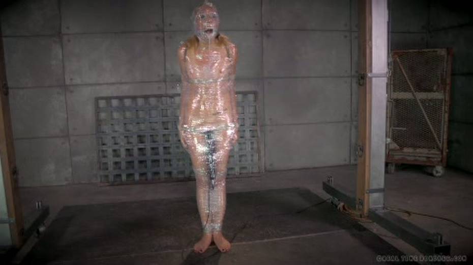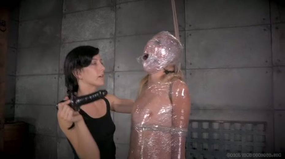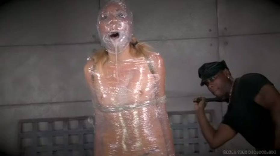 Chick in plastic wrap is punished with big black sex toy