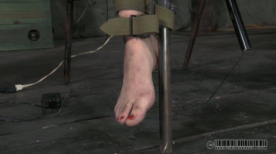 Red haired mistress punishes two tied up and belted sex slaves