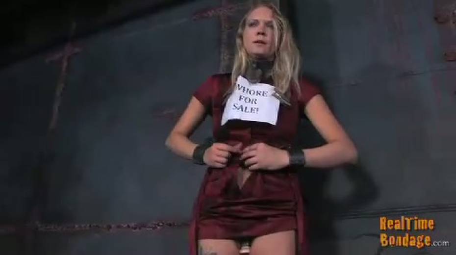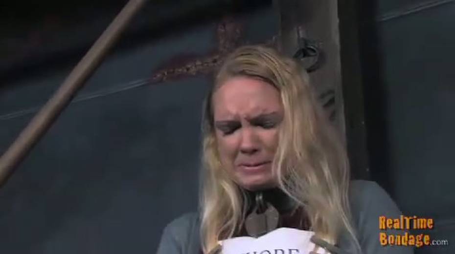 Look like this submissive blonde whore is enjoying the harsh treatment