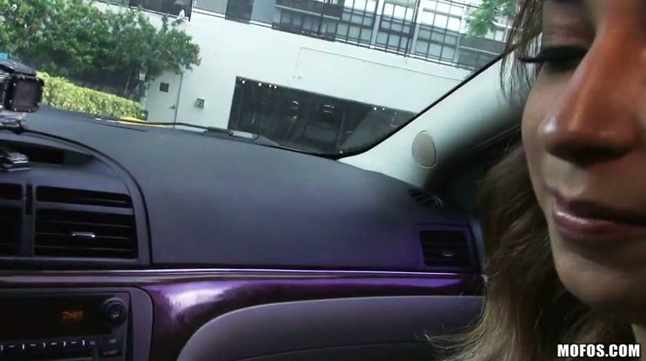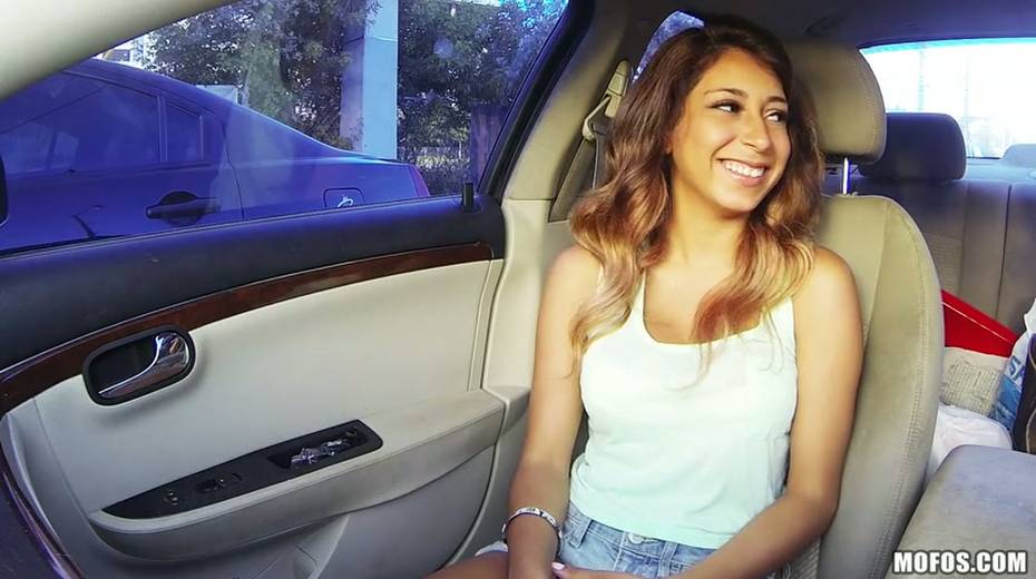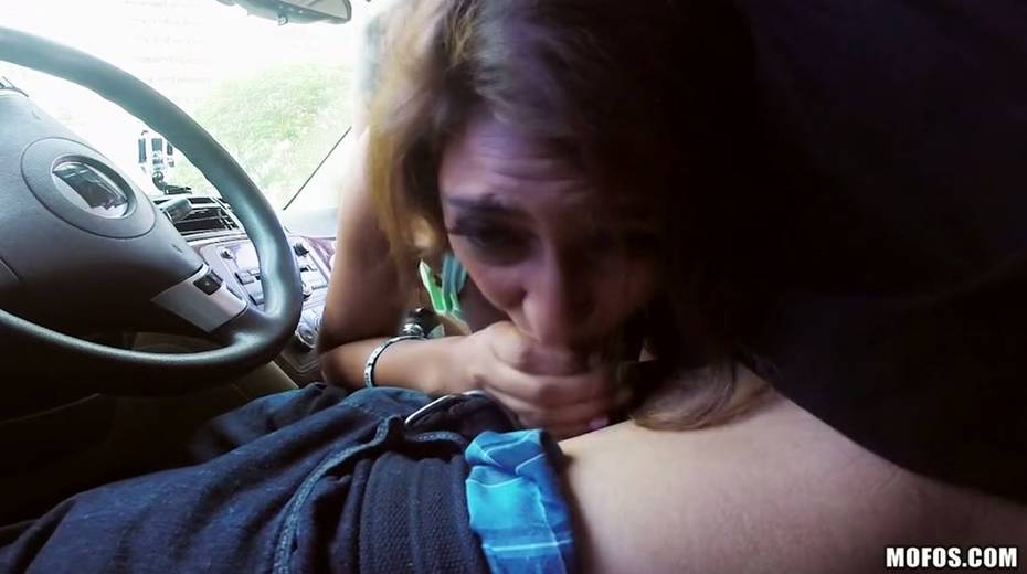 Busty chick Sarai is sucking her lover's dick right in his car