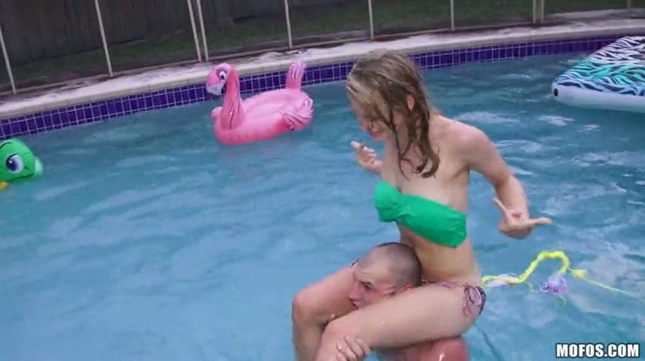Kinky nympho Rachael Madori loves pool parties and she blows like a pro