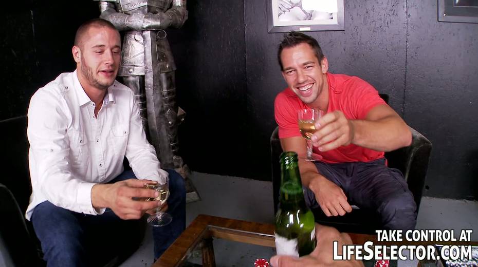 Stunning blonde works on two massive fat cocks and sucks them madly