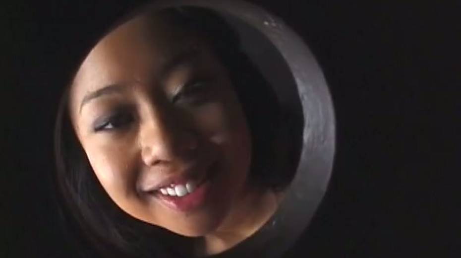 Exotic looking babe Kya Tropic sucking fat ass cock at a glory hole