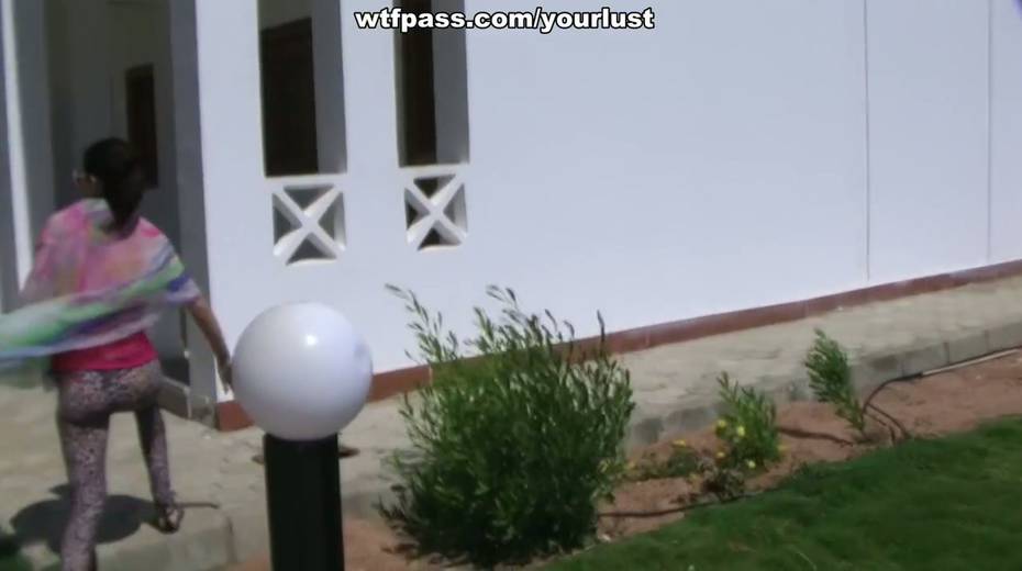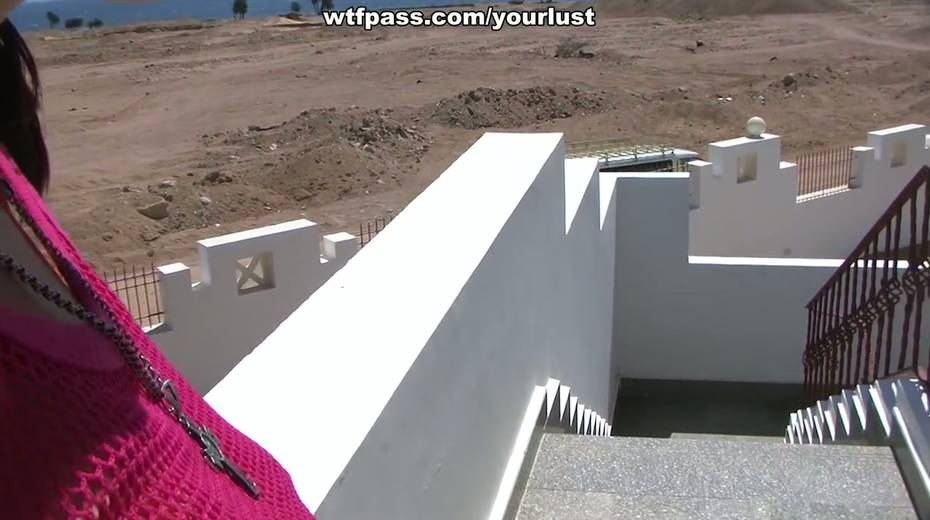 Appetizing brunette GF gets her shaved twat fucked on the balcony