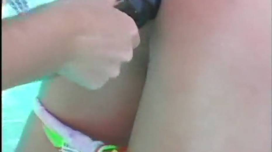 Curvy bitches fucking in a pool outdoor in threesome