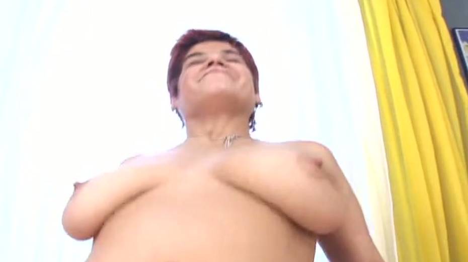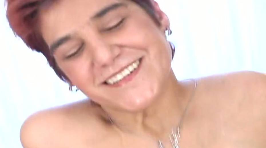 Red-haired granny with saggy tits knows how to straddle her man on top