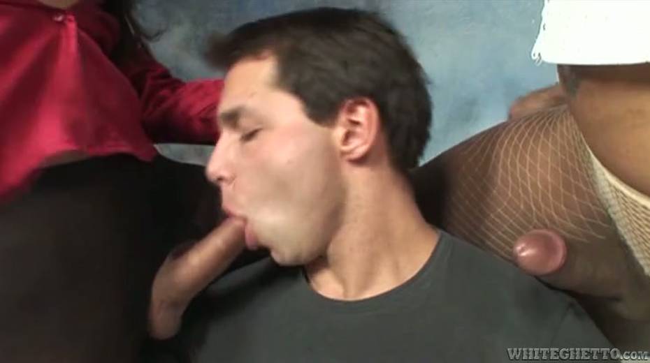Nasty brunette ladyboys get pleased by one horny dude