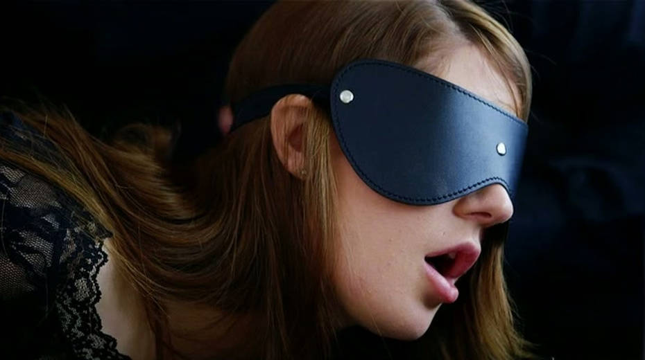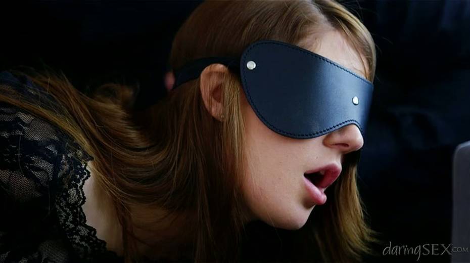 Blindfolded babe whipped in her ass slightly in arousing sex video