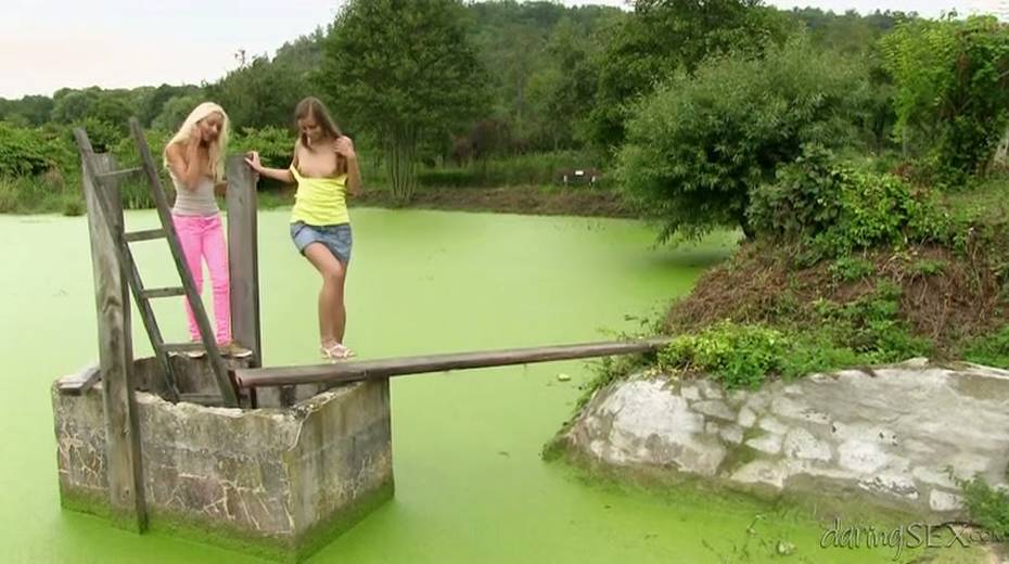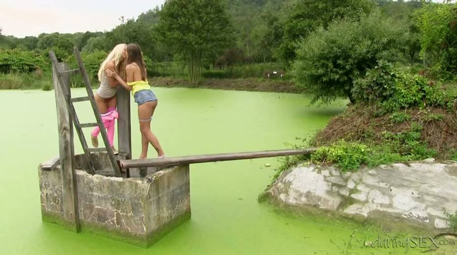 Palatable girls with beautiful bodies pussy licking on a lawn outdoor