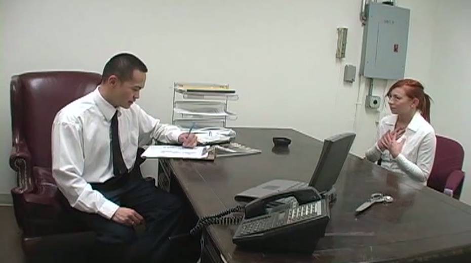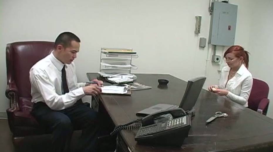 Redheaded boss wants to get raunchy with her new office assistant's cock