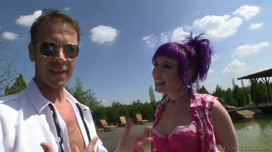 Perverted dude Rocco Sifreddi fucks two lustful emo chicks outdoor