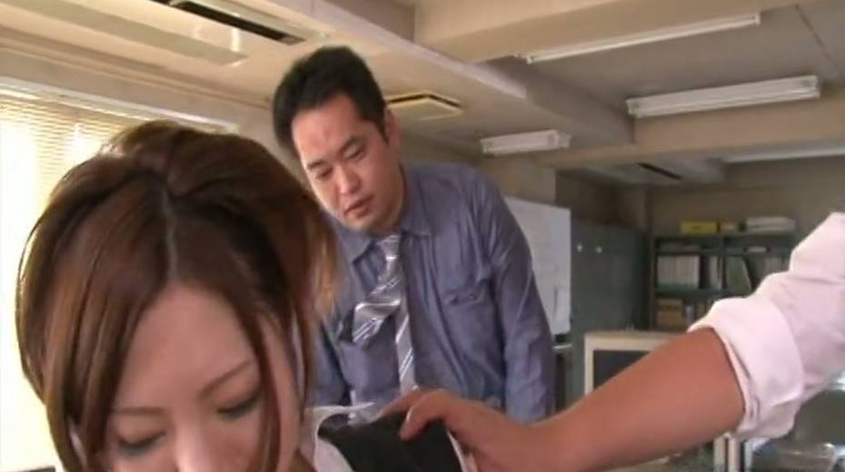A bunch of horny Jap guys toy fuck co-worker in the office