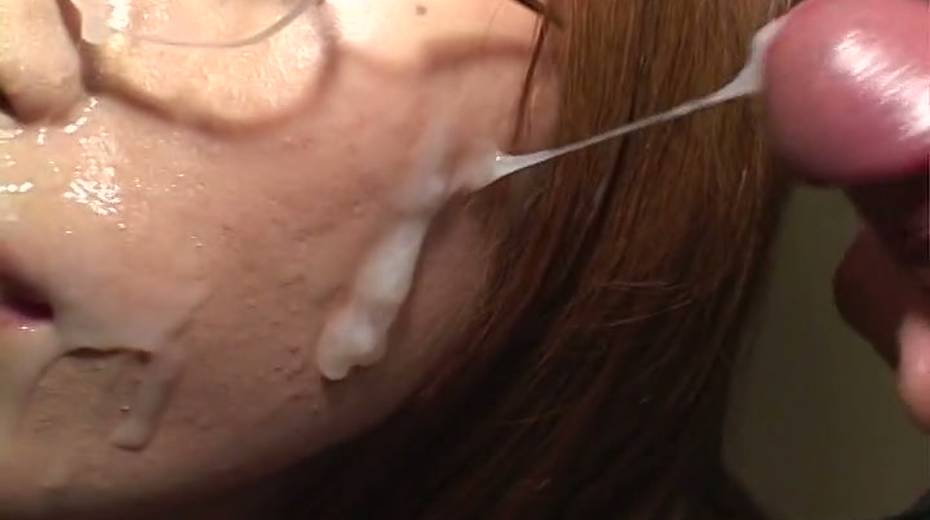 Nerdy Asian chick can't contain excitement when he cums all over her face