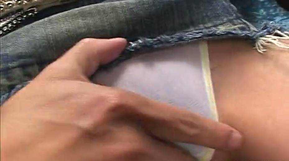 Wanton Japanese hoe in denim skirt loves having her hairy twat fingered