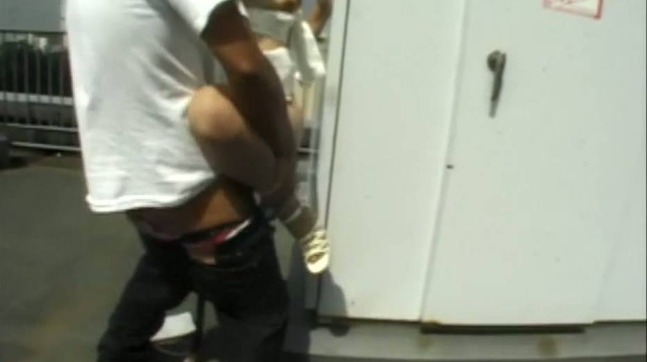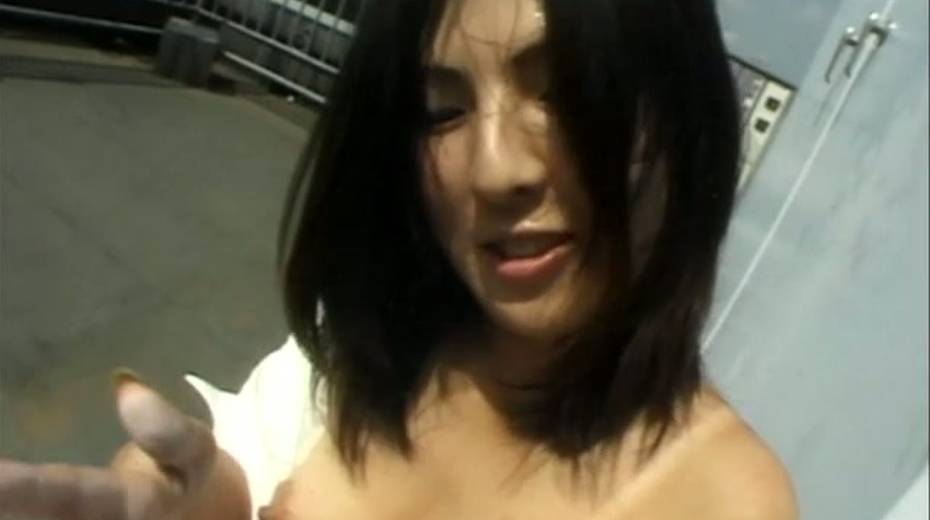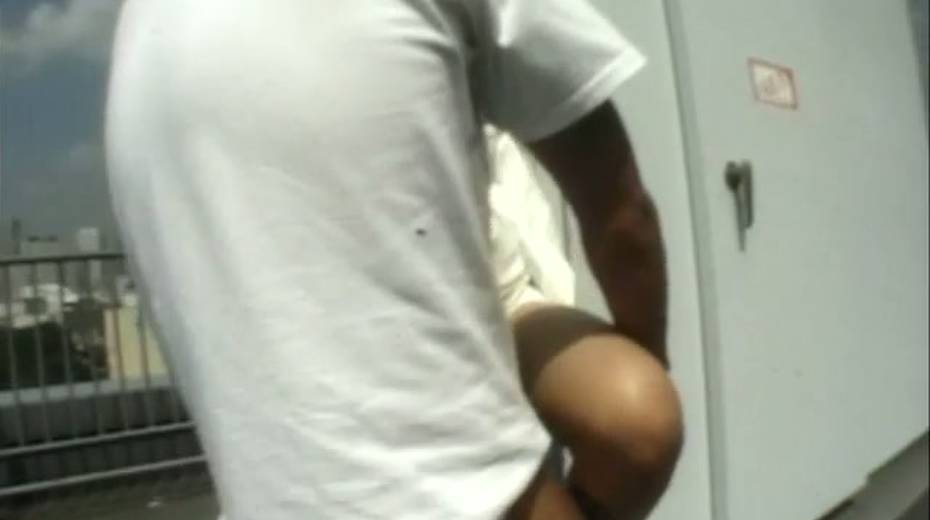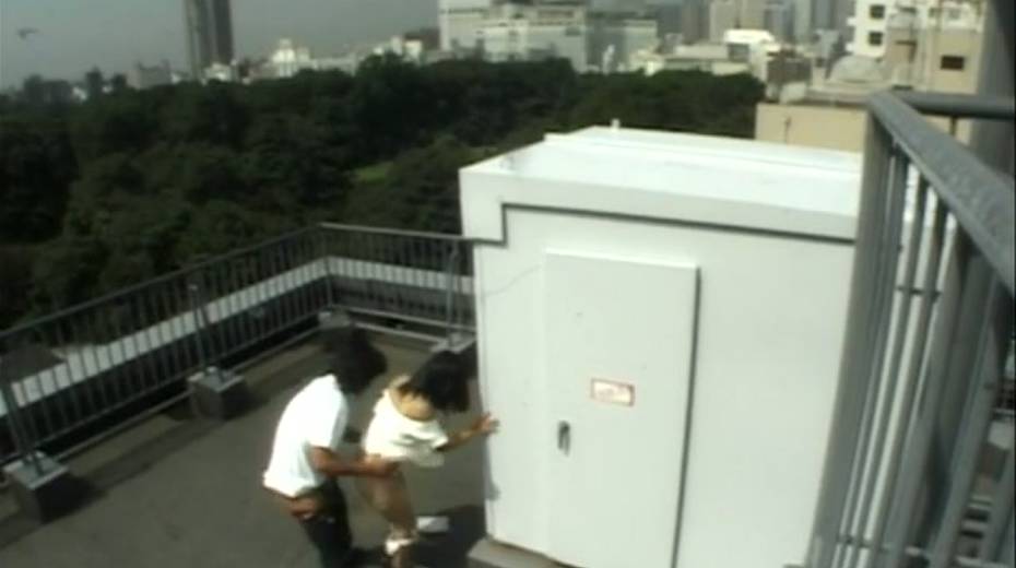 Kinky Japanese babe gets fucked in a doggy position on a roof
