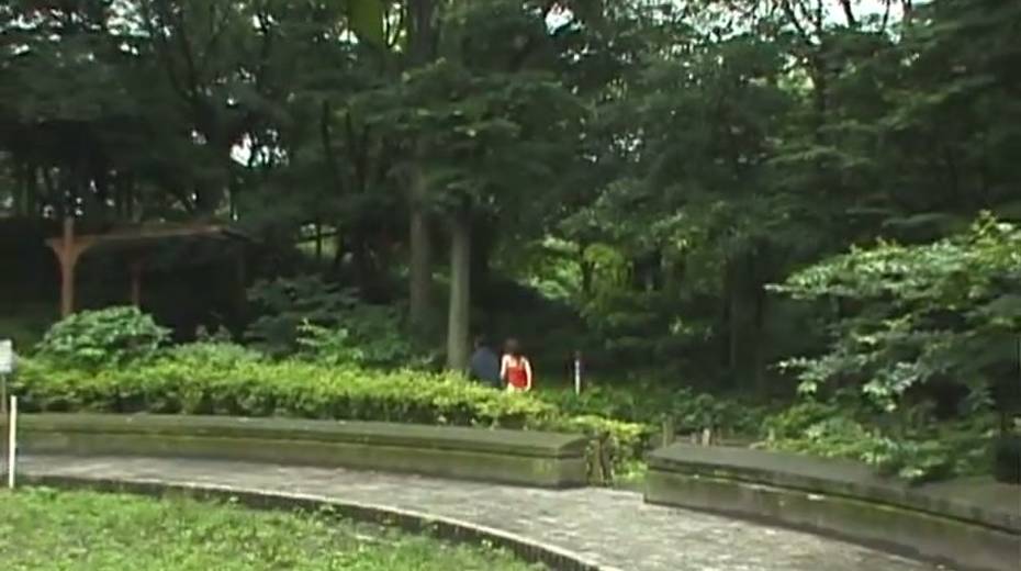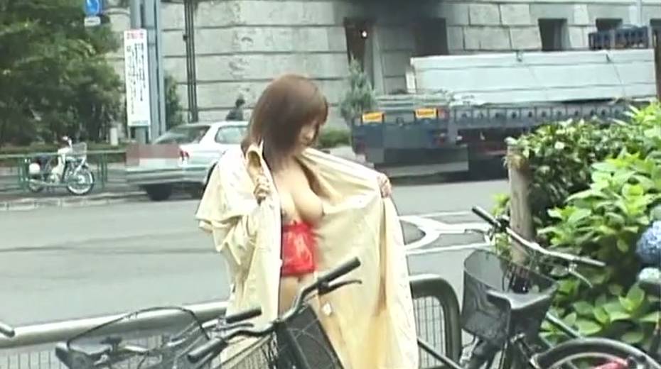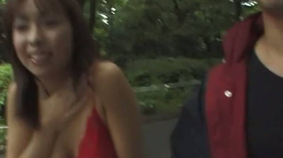 Big boobed Japanese exhibitionist gives head in a park