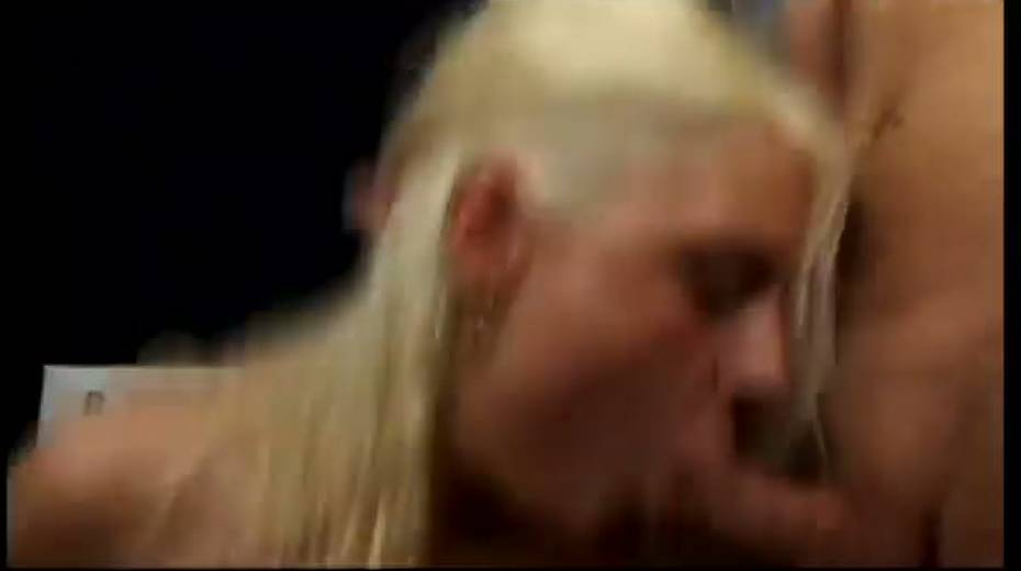 Filthy blonde hooker fucks two horny studs in dirty gangbang session