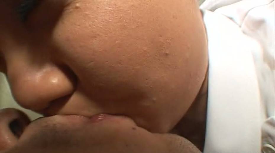 Giggling Japanese nurse rubs dude's cock while teasing his nipples