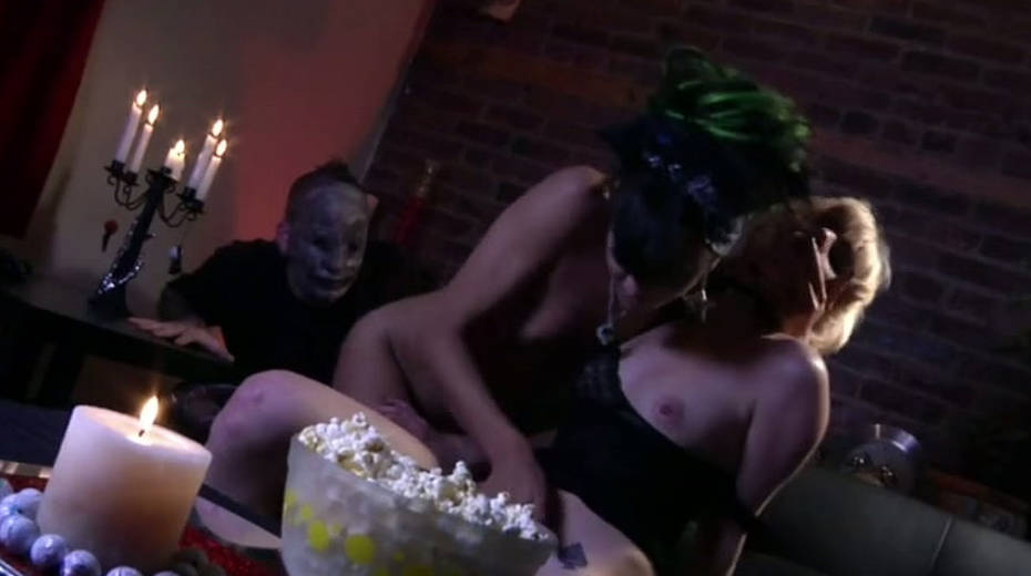 Saucy lesbian girls fuck passionately in front of kinky voyeur