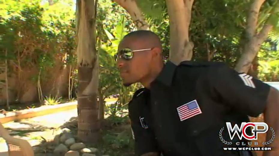 Handsome black cop fingers soaking wet pussy of sexy partner