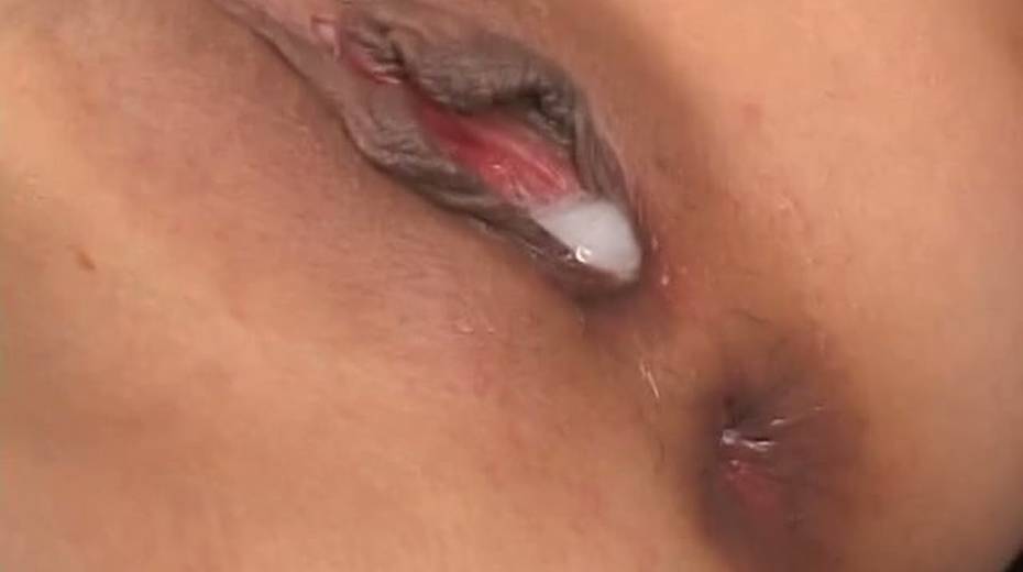 Fake tittied Jap slut is creampied in the end of hardcore DP session