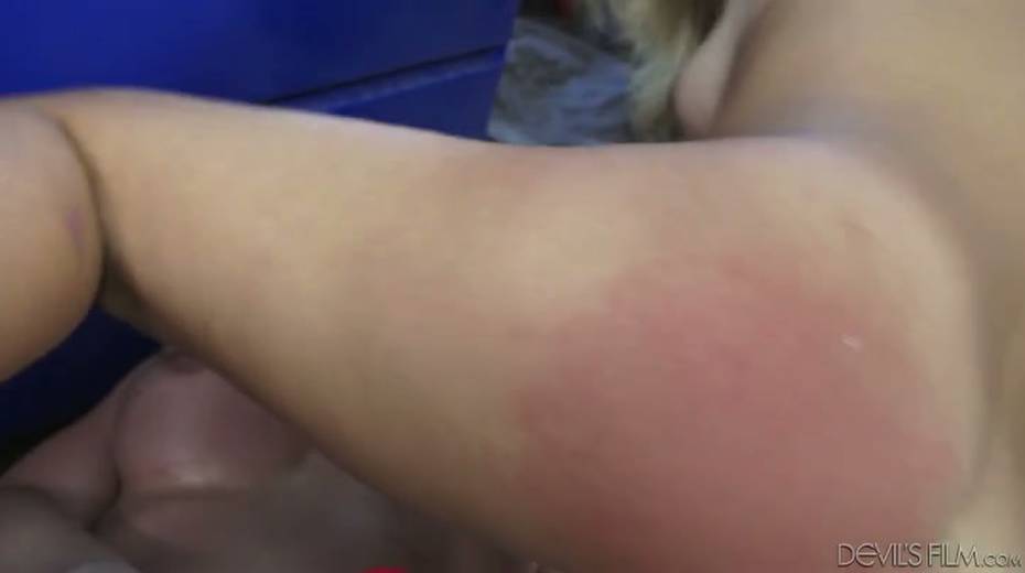 Spoiled teen slut fucked doggystyle with big strapon