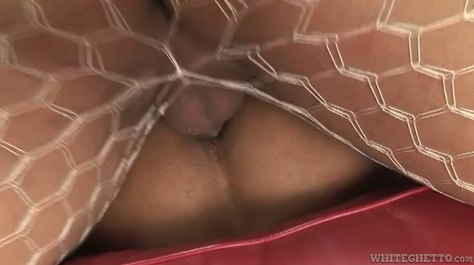 Torrid shemale whore in fishnet pantyhose fucks tight ass hole from behind