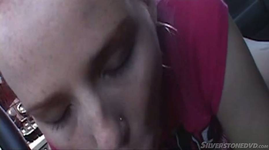 Kinky slut with a pierced nose is blowing her BF's dick right in his car
