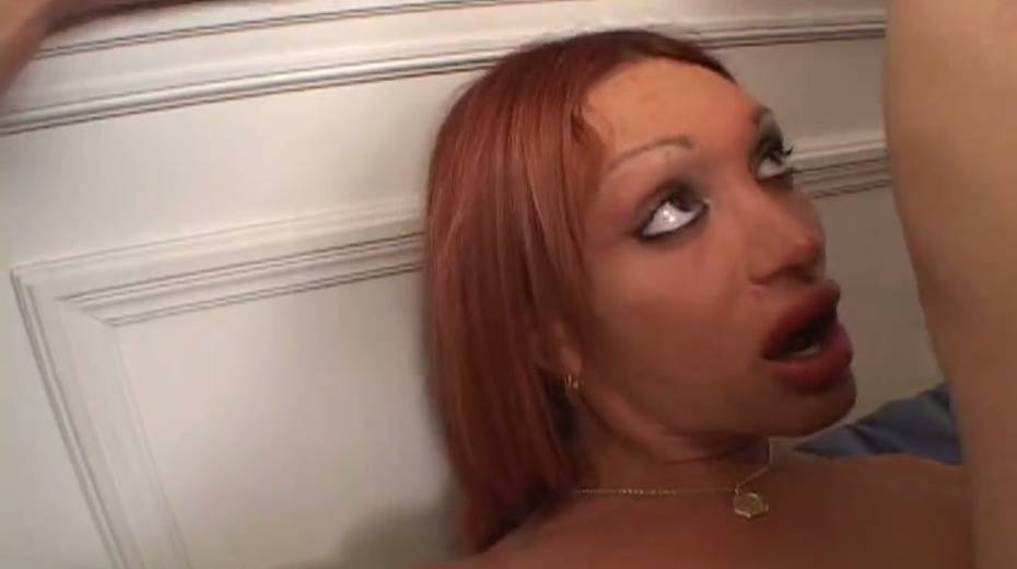 Redhead shemale slut with big boobs fucks dirty in threesome action