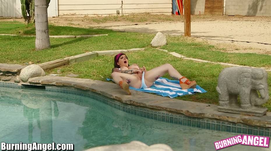 Hot bimbo by the pool is fed with a dick and buttfucked