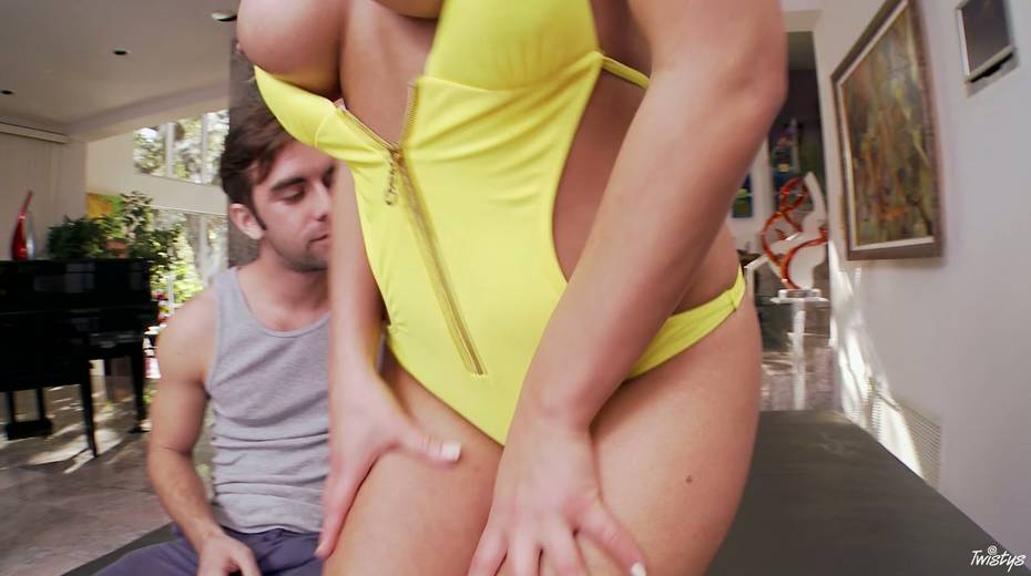 Stunning babe in yellow bikini Olivia Austin has nothing against sucking dick