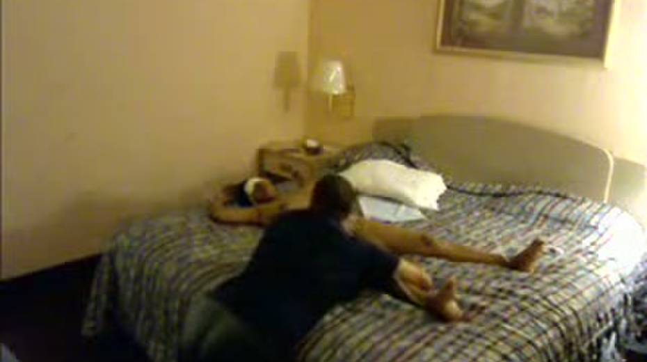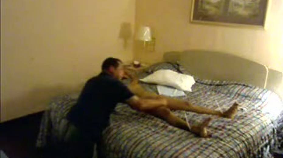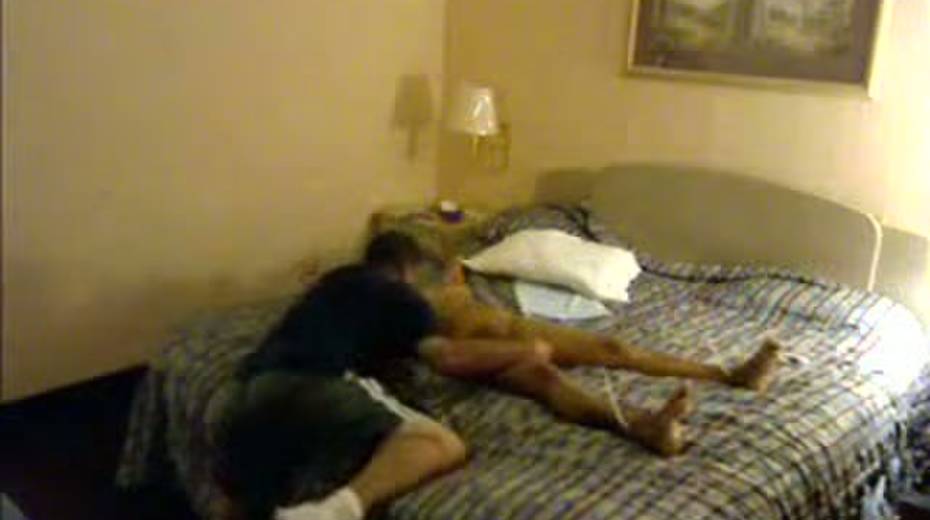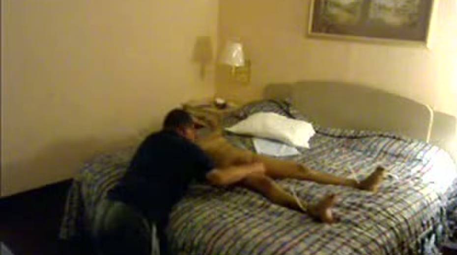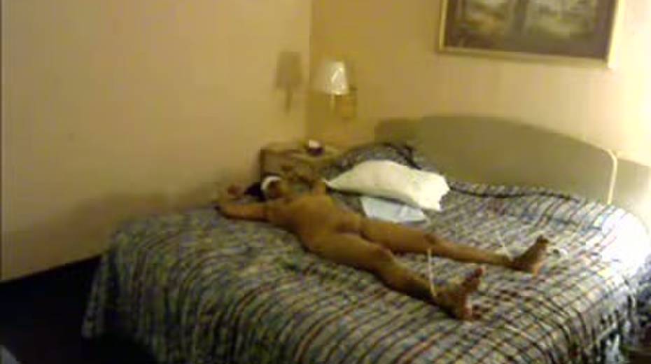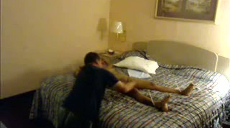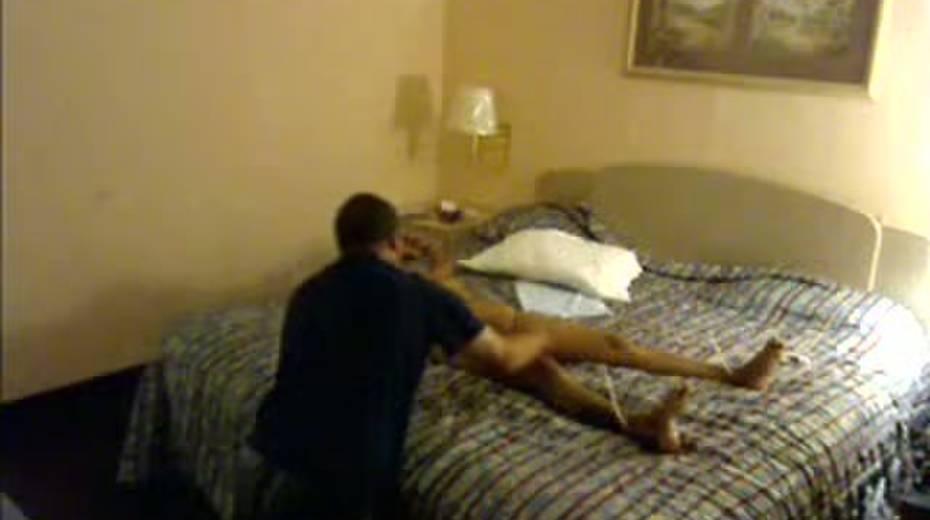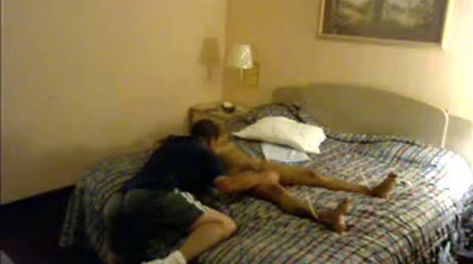 Tied up brunette GF gets her pussy tickles and tits sucked by dude