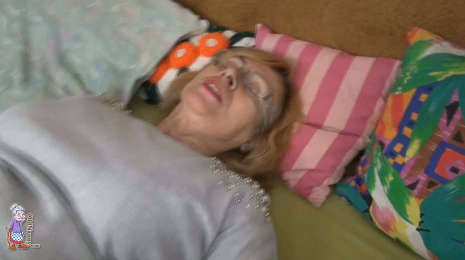 Old light haired nympho with saggy ugly tits uses dildo to fuck cunt