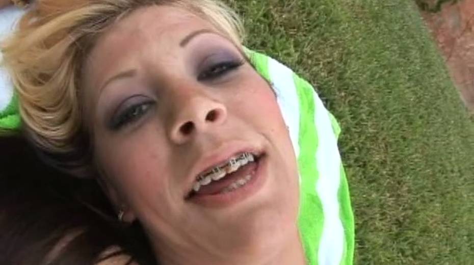 Straight haired blonde nympho masturbates her hungry pussy outdoors