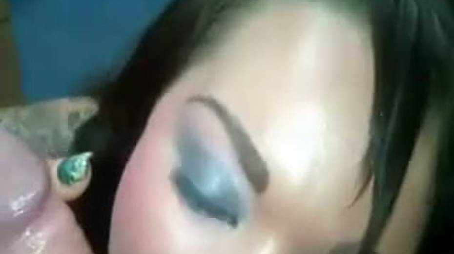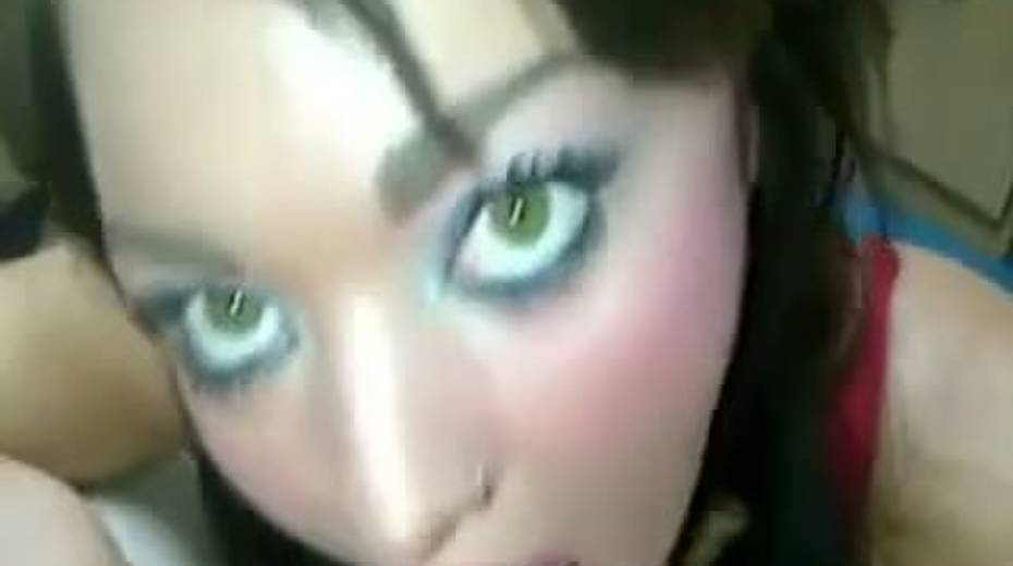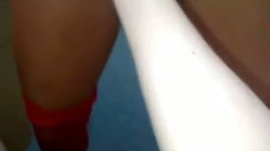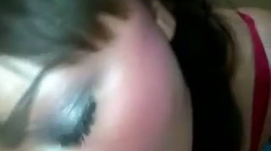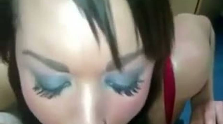 Sexy amateur girl in red lingerie set sucking cock in POV