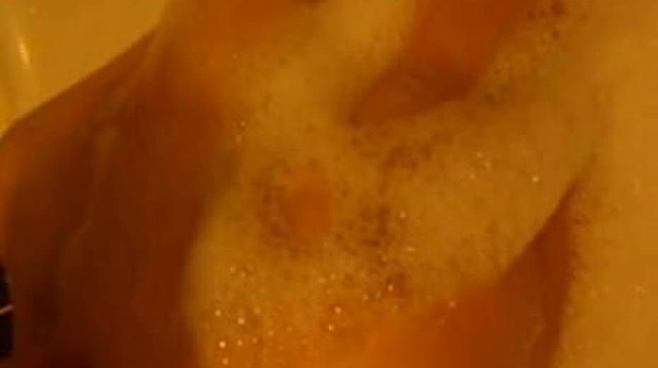 Desirable amateur girl fondles herself bathing in a bubbly bath
