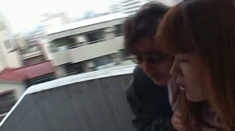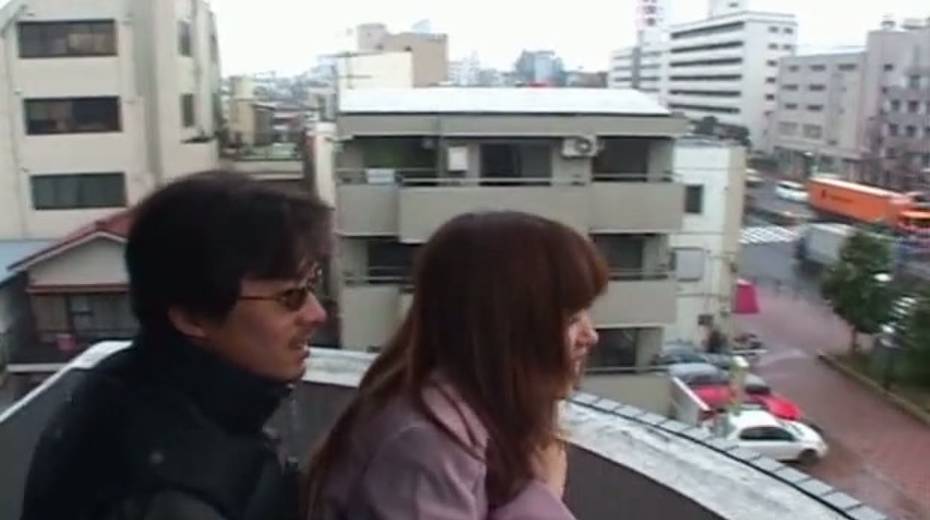 Cute Japanese babe gets fingered and pleased with sex toy on a balcony