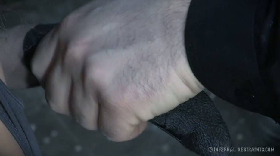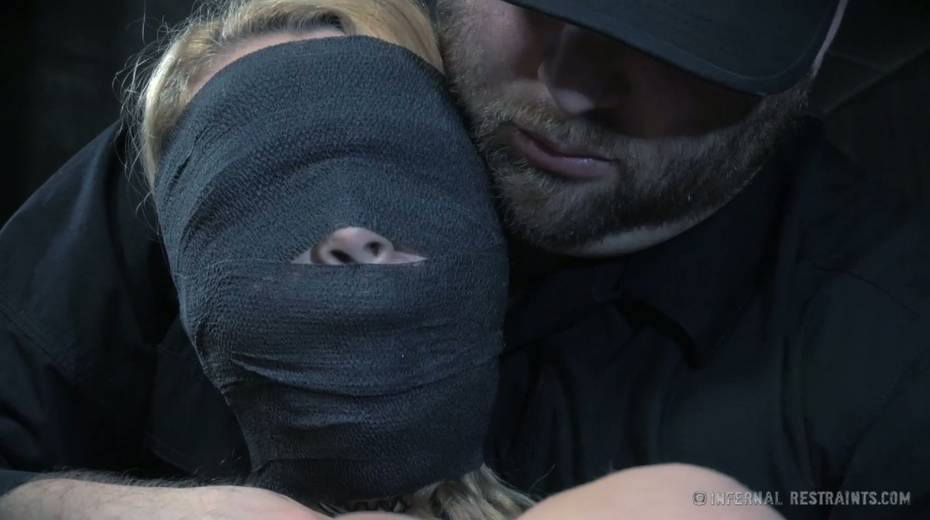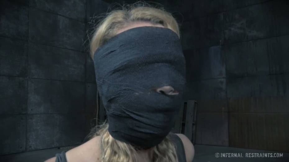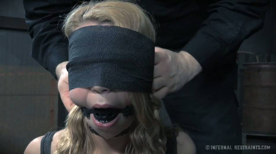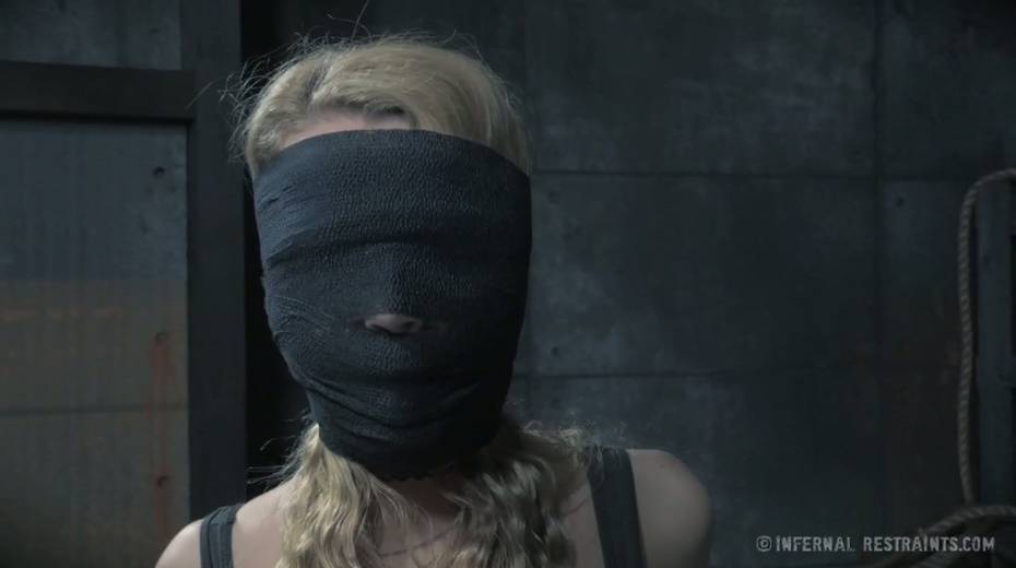 Tied up blonde is sitting on the floor while master plays with her cunt